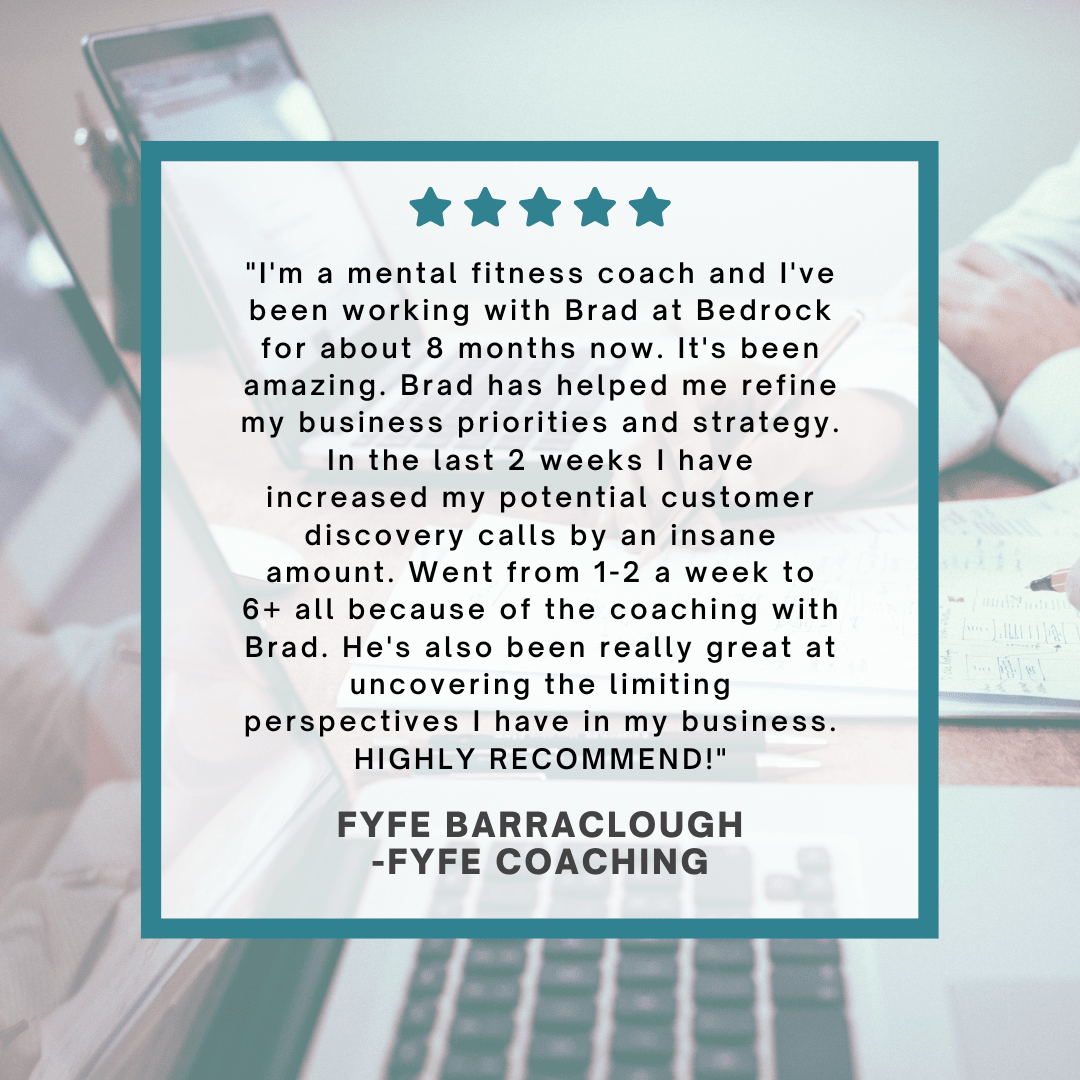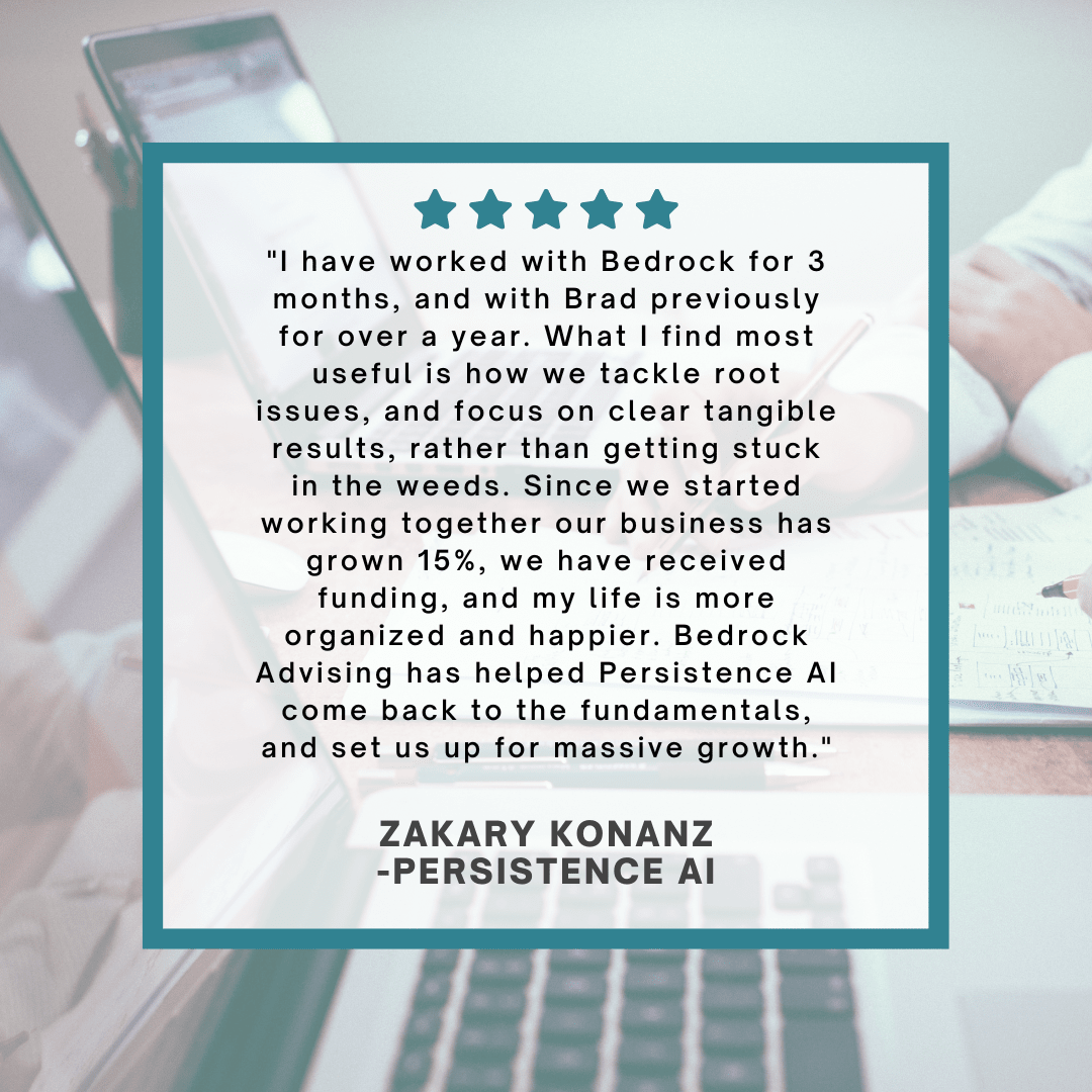 Bedrock Advising was born from Brad’s deep desire to provide approachable and affordable bespoke coaching, consulting, and training to small and medium sized businesses. Solutions tailored to what is needed, implemented in a way to get meaningful results today. And a dream that any small business, empowered with the things large corporations have when it comes to leadership training, coaching and systems – could make more money, it’s people can have more fun, and they can manage like seasoned executives.